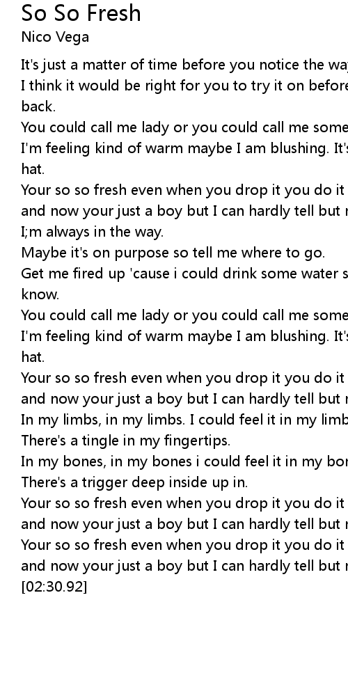 | [01:30.00] | Your so so fresh even when you drop it you do it like a man. |