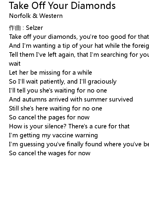 | Song | Take Off Your Diamonds |