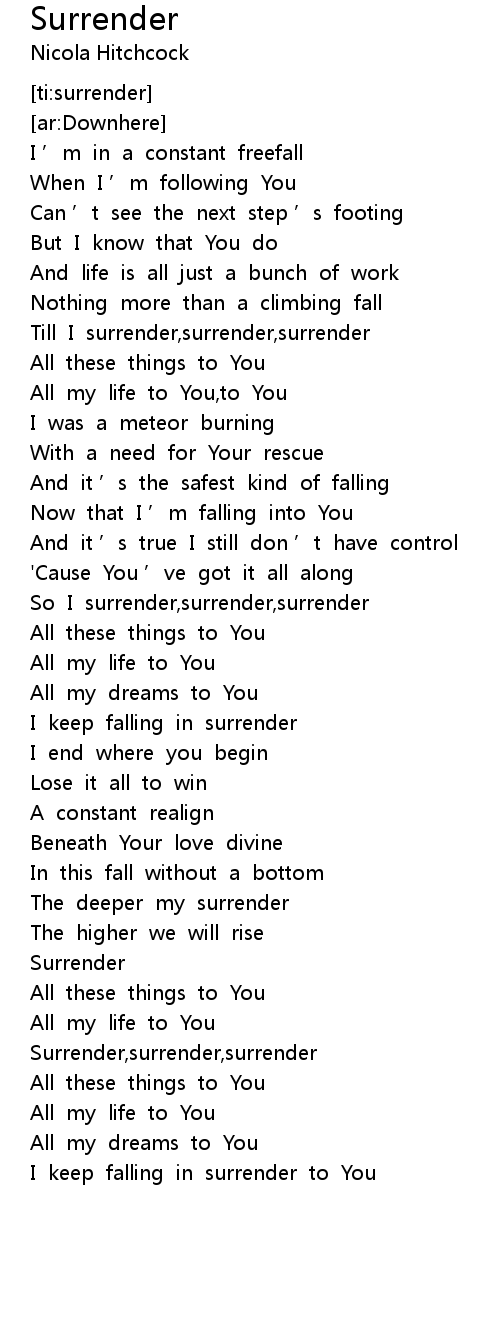 | [00:47.819] | Till I surrender,surrender,surrender |