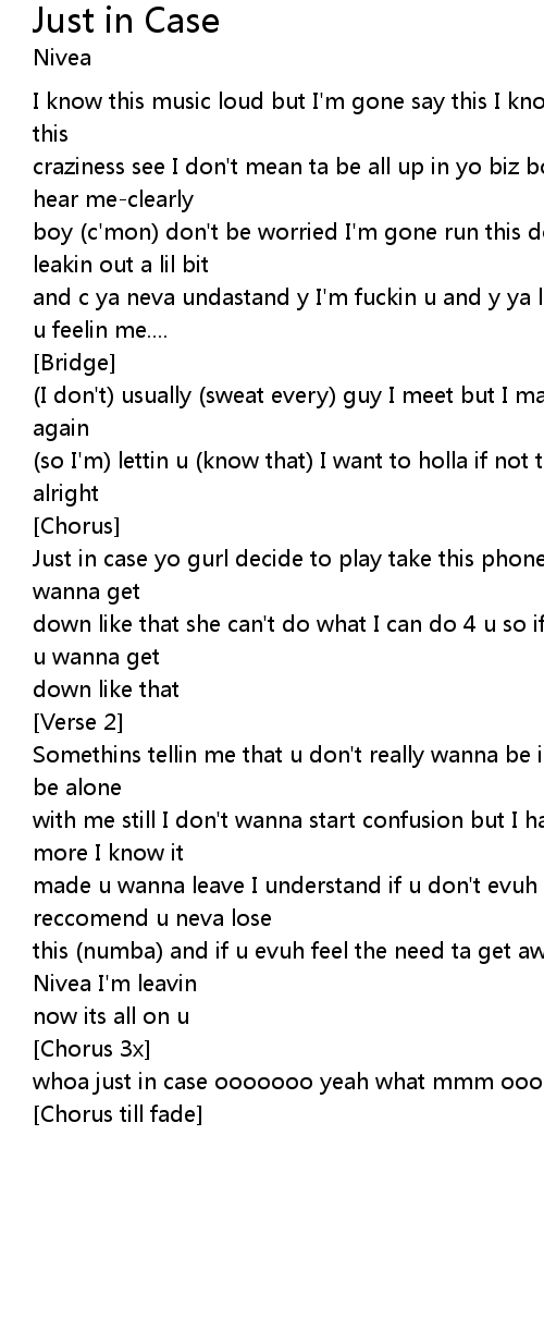 | whoa just in case ooooooo yeah what mmm ooooo JUST IN CASE!! | |