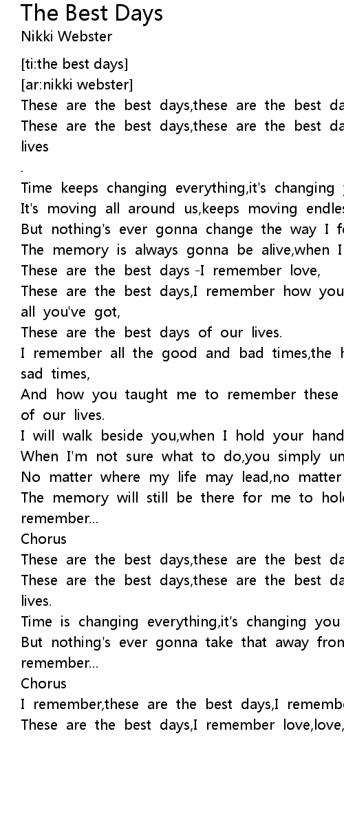 These are the best days,these are the best days, |