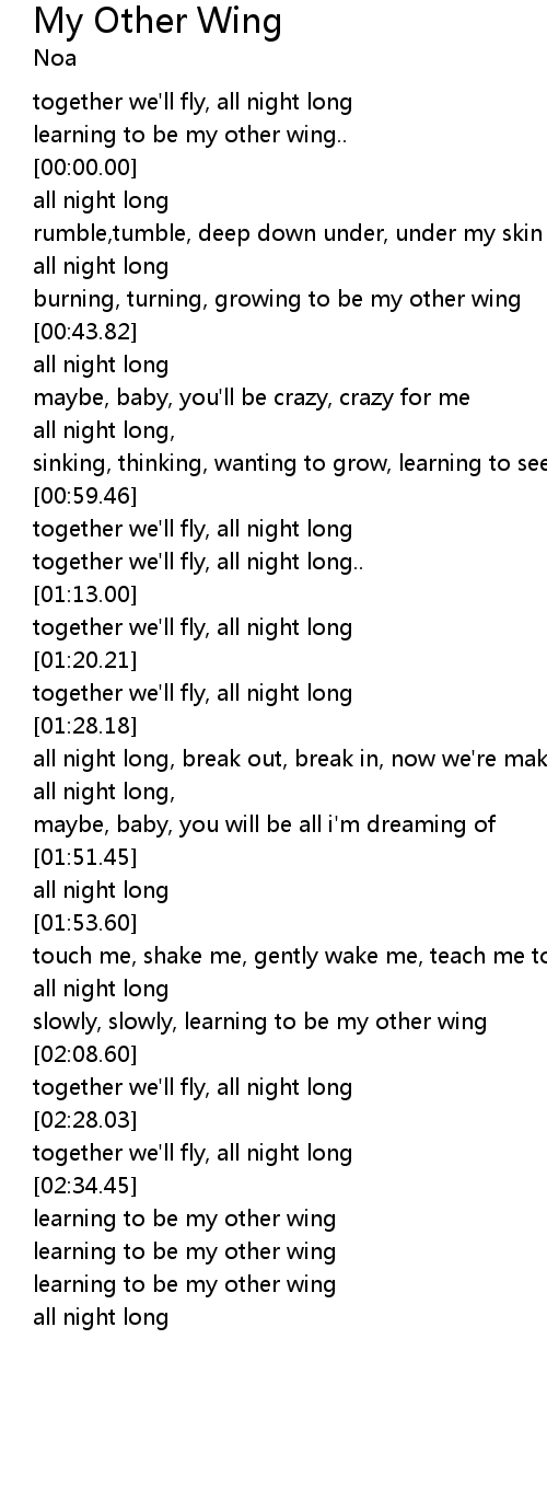 | [02:00.56] | slowly, slowly, learning to be my other wing |