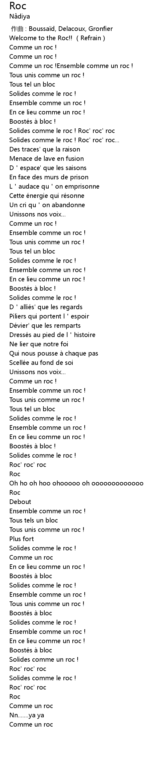 | [00:36.00] | Solides comme le roc ! Roc' roc' roc... |