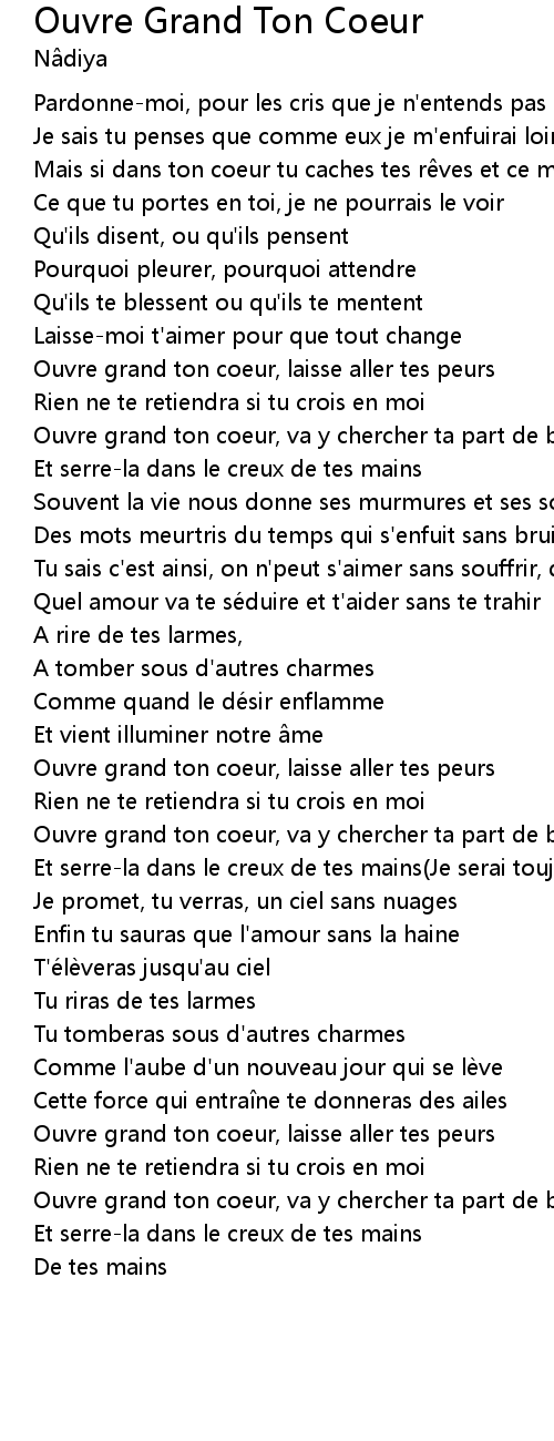 | Ouvre grand ton coeur, laisse aller tes peurs | |