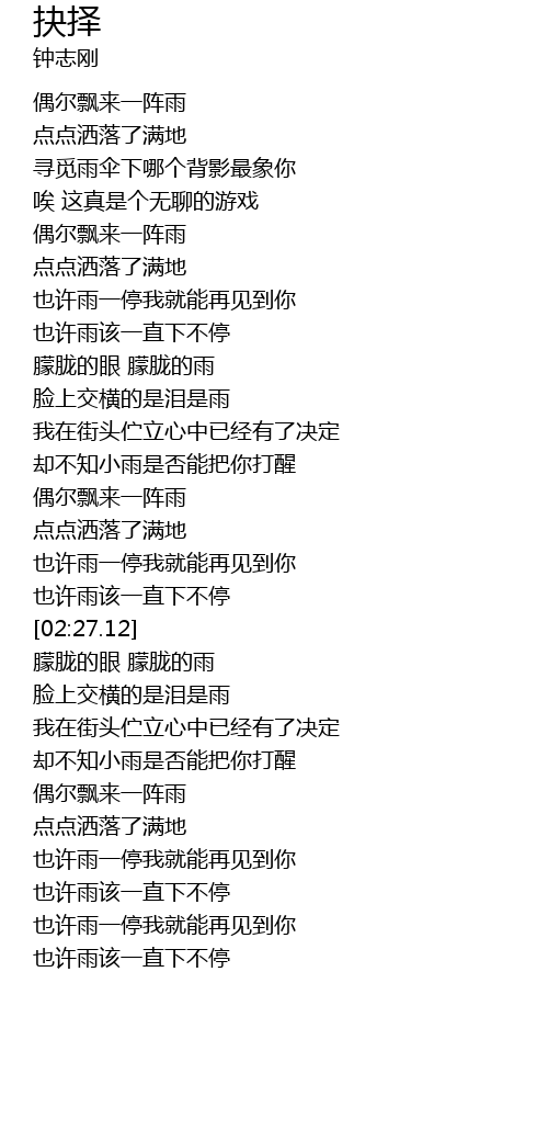 | [02:54.44] | 朦胧的眼 朦胧的雨 |