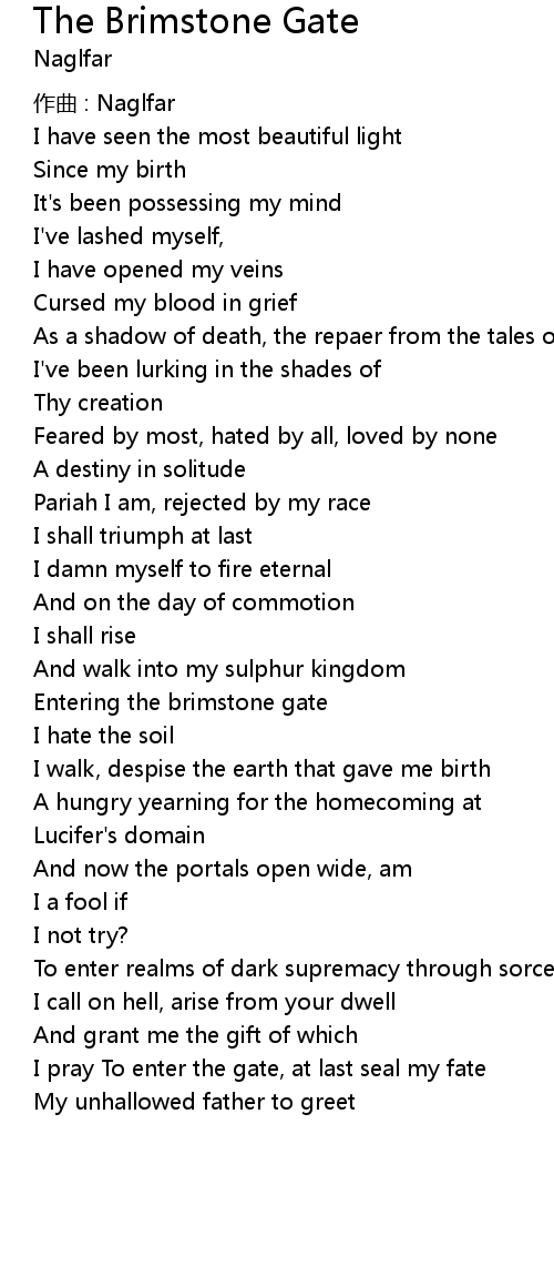 | I pray To enter the gate, at last seal my fate | |