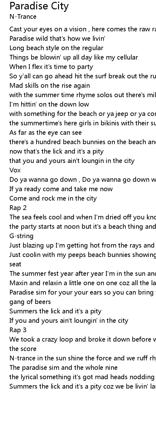 Summers the lick and it's a pity coz we be livin' large in paradise city |