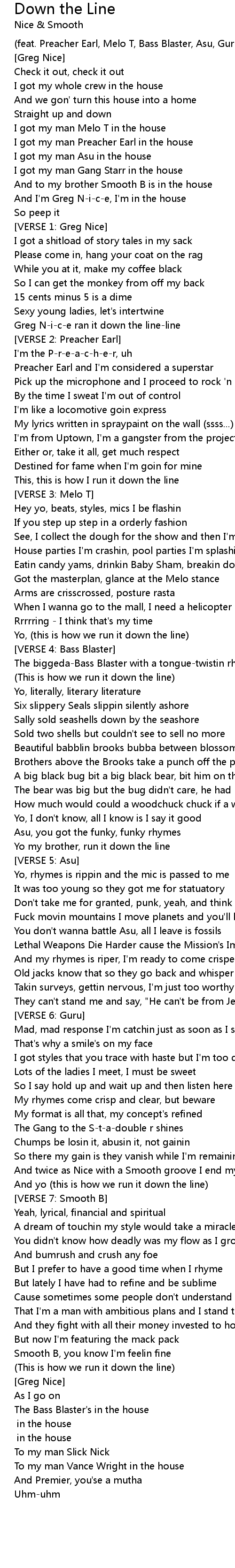 (feat. Preacher Earl, Melo T, Bass Blaster, Asu, Guru) |