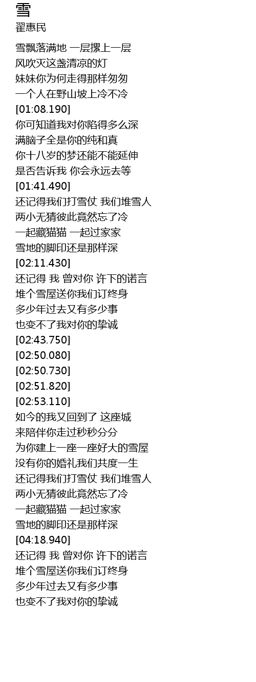 | [03:32.090] | 为你建上一座一座好大的雪屋 |