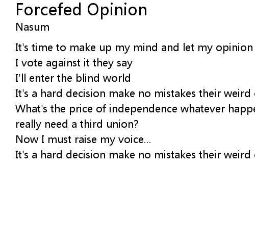 | Song | Forcefed Opinion |