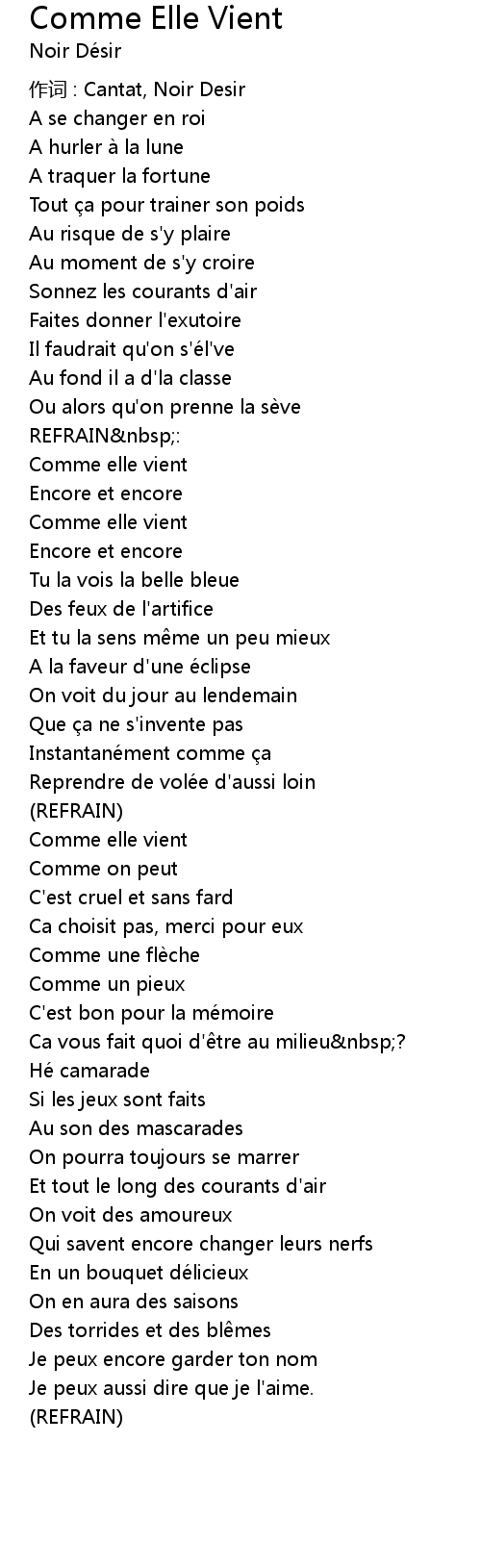| 作词 : Cantat, Noir Desir | |