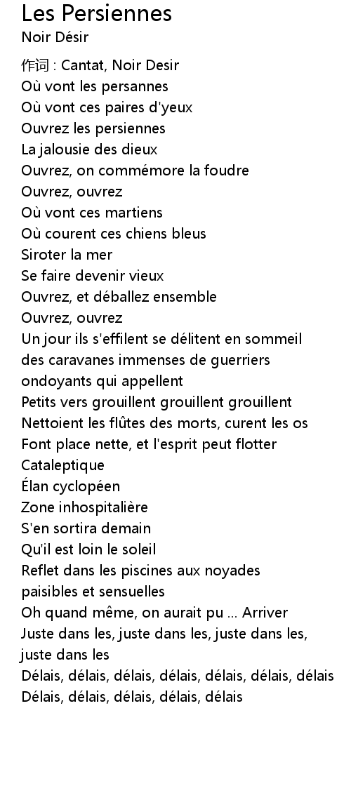 | 作词 : Cantat, Noir Desir | |