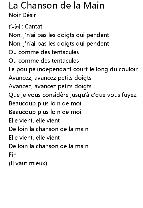 | Song | La Chanson de la Main |