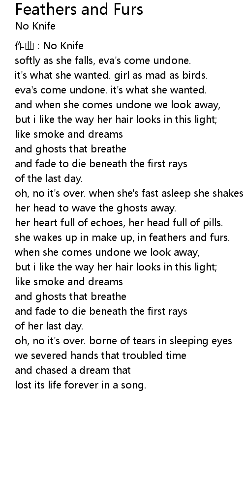 | Song | Feathers and Furs |