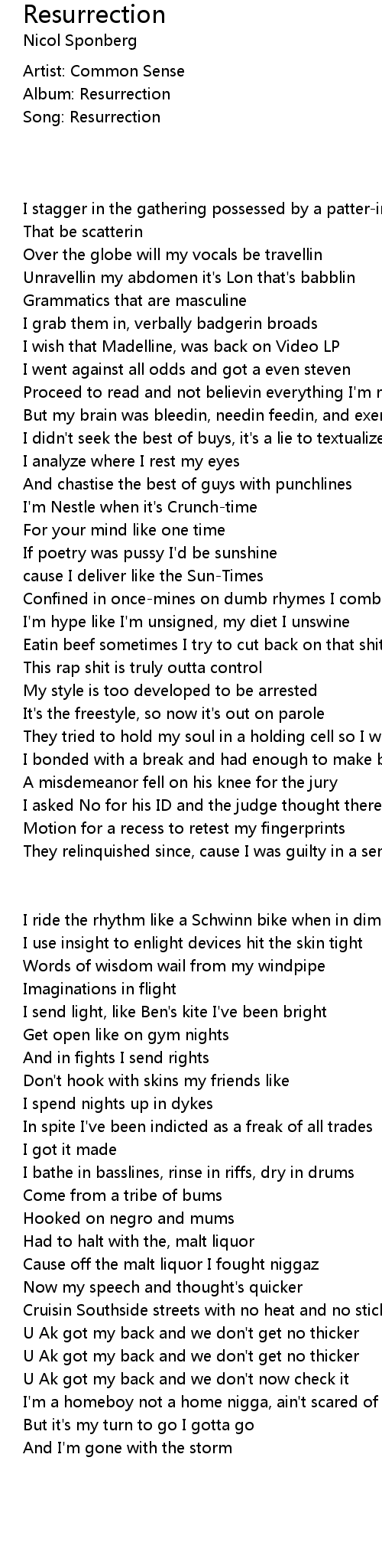Song: Resurrection |