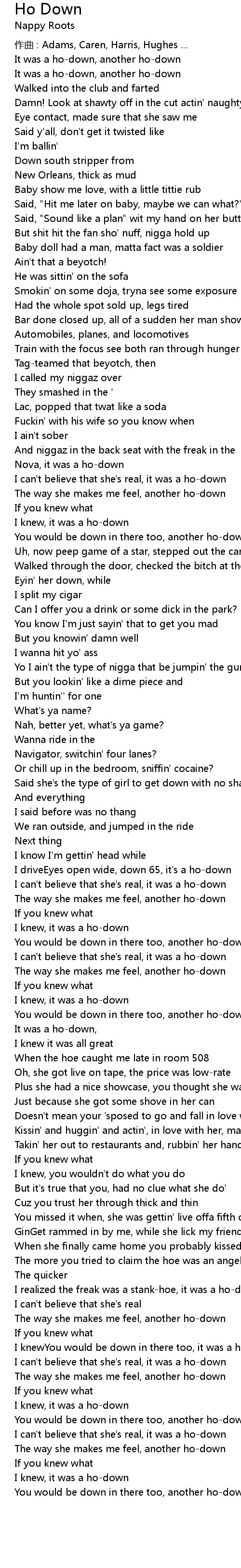 | I realized the freak was a stank-hoe, it was a ho-down | |