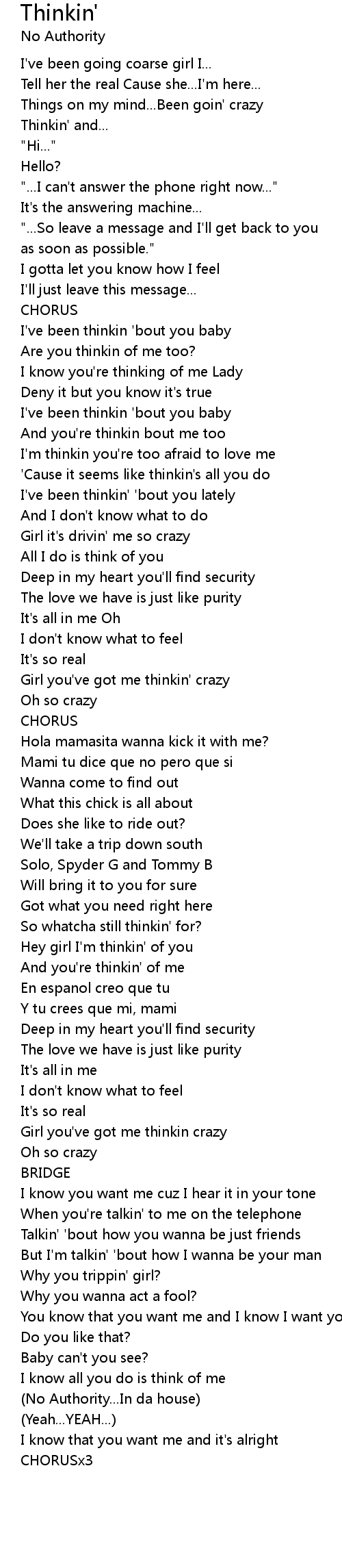 'Cause it seems like thinkin's all you do |