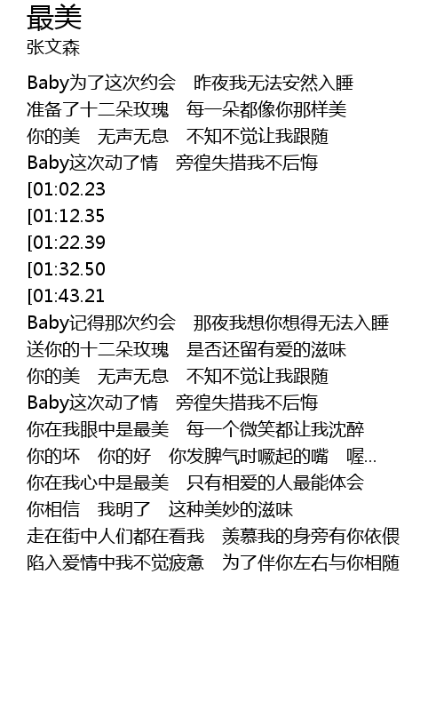 | [00:22.02] | Baby为了这次约会 昨夜我无法安然入睡 |