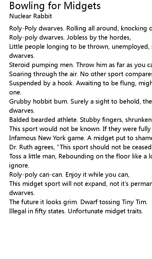 Roly-Poly dwarves. Rolling all around, knocking over pins, it's a New York sin. |