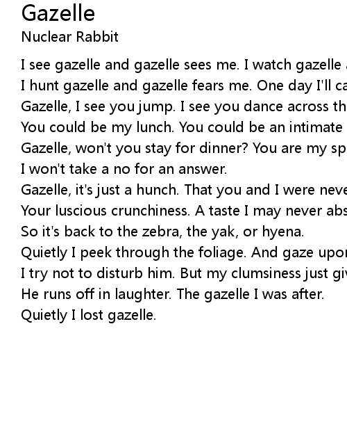 Gazelle, it's just a hunch. That you and I were never meant to be. |