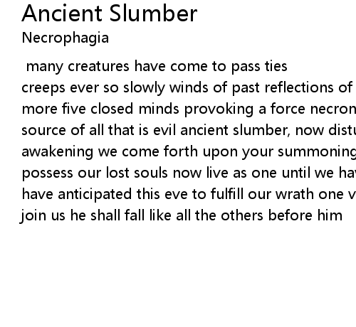 [inspired by the movie Evil Dead...] many creatures have come to pass ties creeps ever so slowly winds of past reflections of the future eternal rest no more five closed minds provoking a force necronomicon, book bound in flesh source of all that is evil ancient slumber, now disturbed a welcomed rude awakening we come forth upon your summoning entering your body to control and possess our lost souls now live as one until we have you all waiting eagerly we have anticipated this eve to fulfill our wrath one vacant soul still left to join us he shall fall like all the others before him |