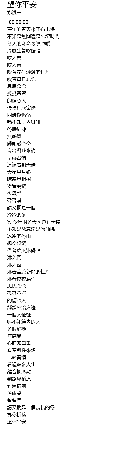 | [01:54.04][00:00.00] | wàng nǐ píng ān |