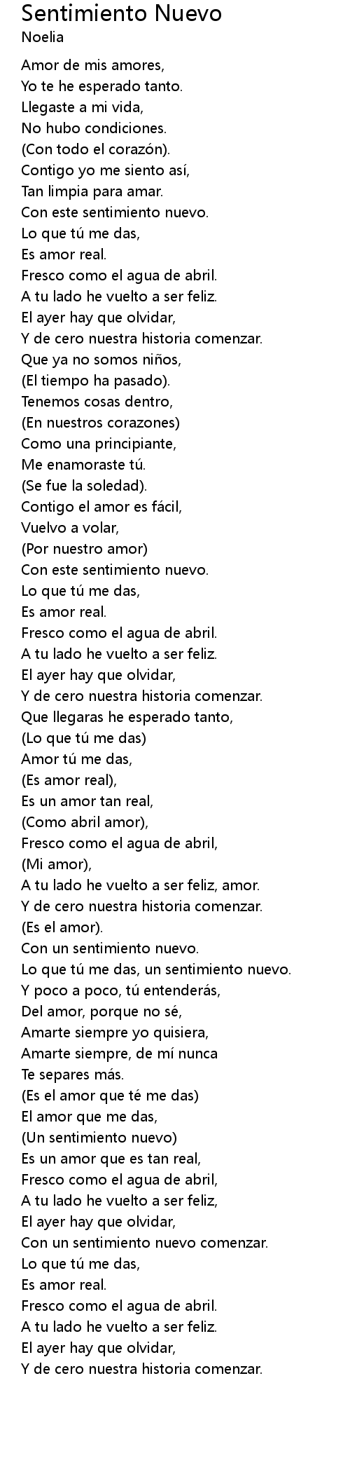 | Lo que tú me das, un sentimiento nuevo. | |