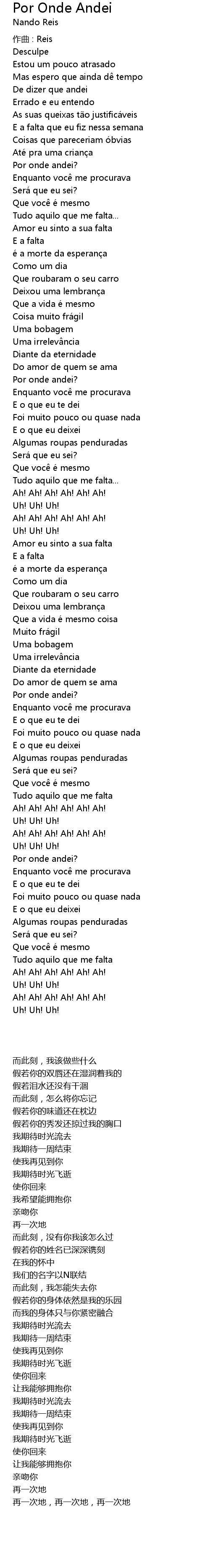 | Song | Por Onde Andei |