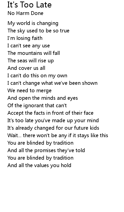 It's too late you've made up your mind |