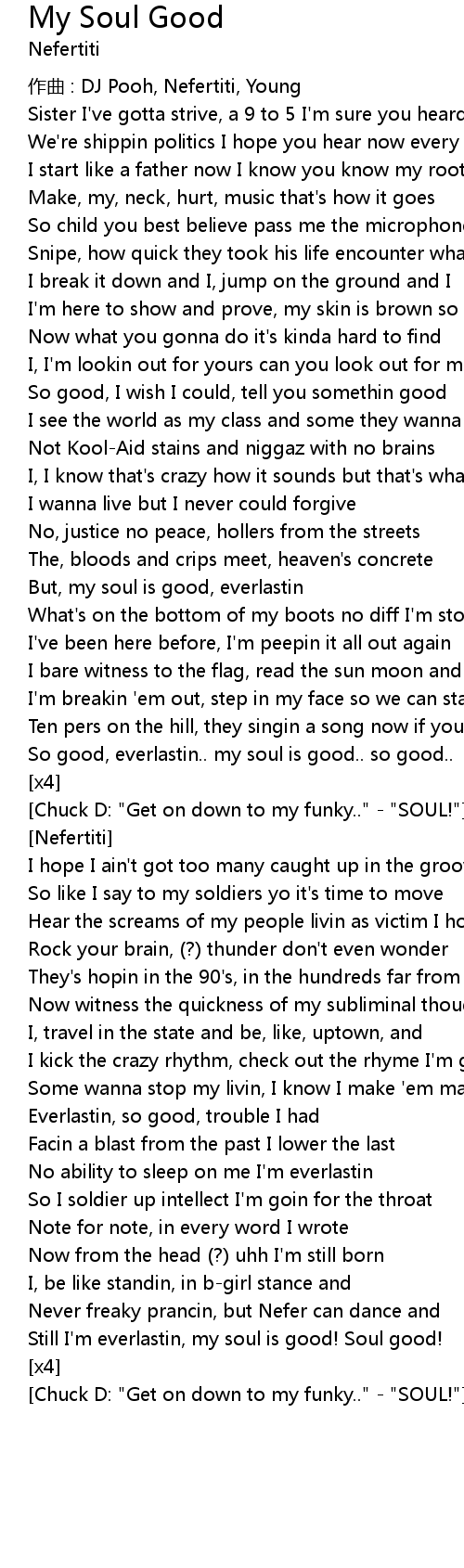 | Still I'm everlastin, my soul is good! Soul good! | |