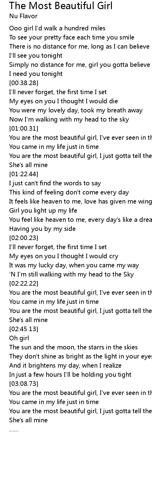 | [02:34.22] | You are the most beautiful girl, I just gotta tell the world |