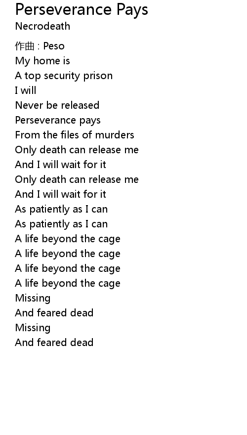 | Song | Perseverance Pays |