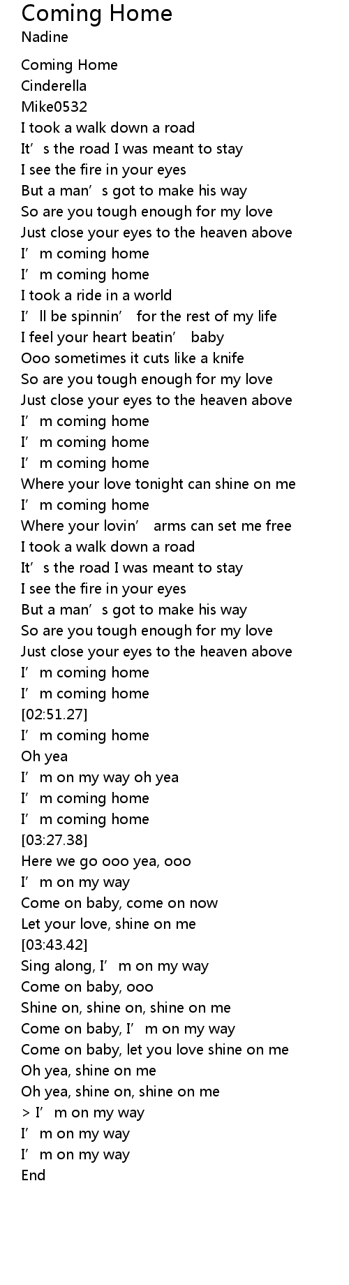 | [00:42.31] | I' m coming home |