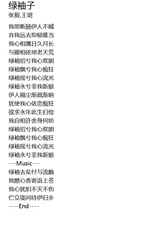 | [00:58.73] | 绿袖飘兮我心痴狂 |