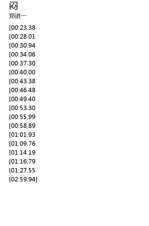 | [01:46.29][00:23.38] | 心情有淡薄啊闷 |