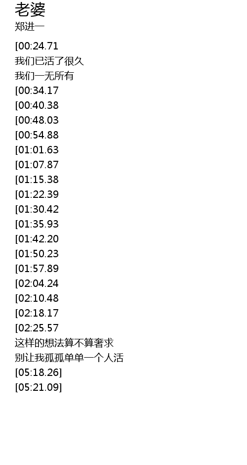 | [04:10.86][01:50.23] | 只因为我是你的老婆 |