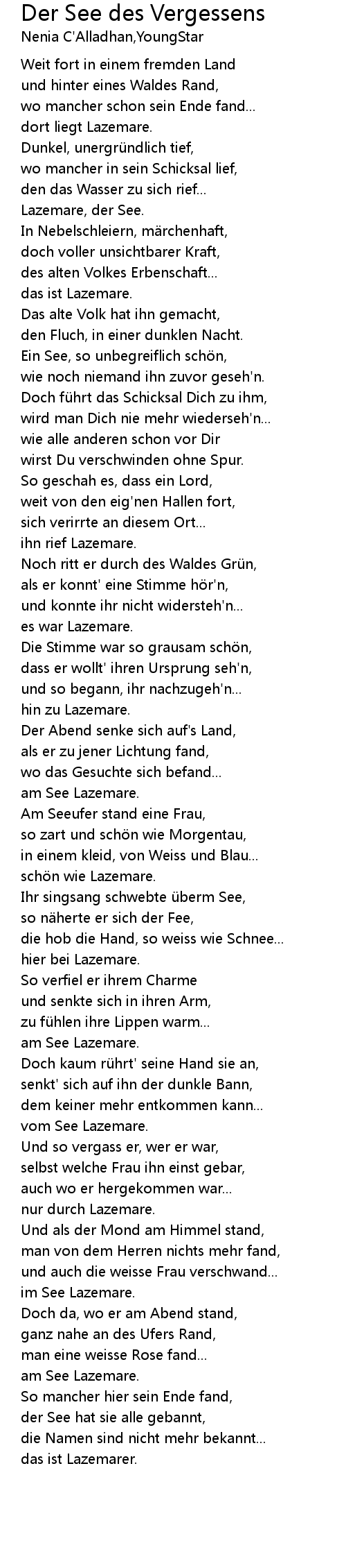 | Song | Der See des Vergessens |