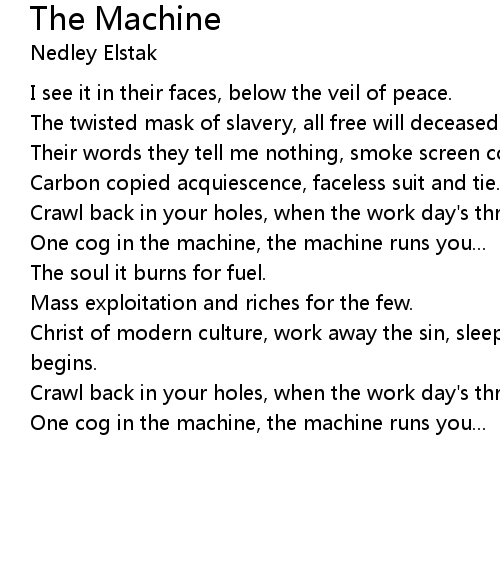 One cog in the machine, the machine runs you... |