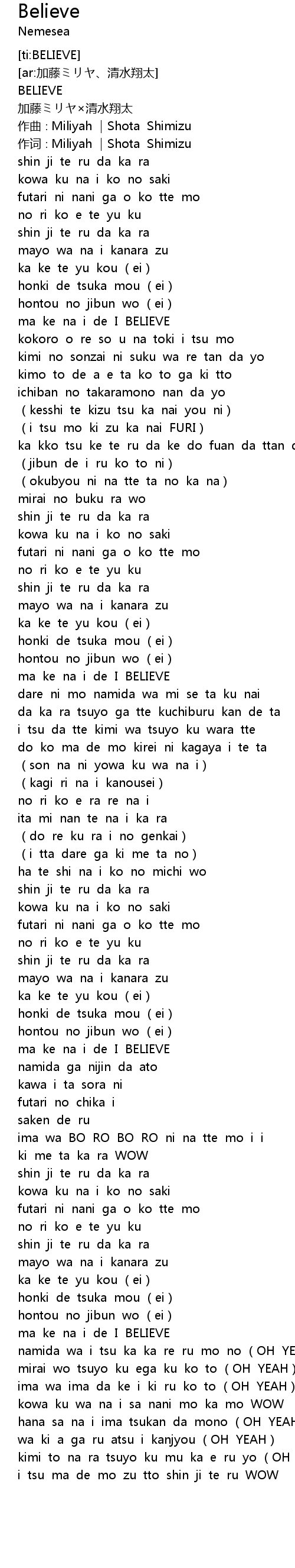 | [02:47.94] | ma ke na i de I BELIEVE |