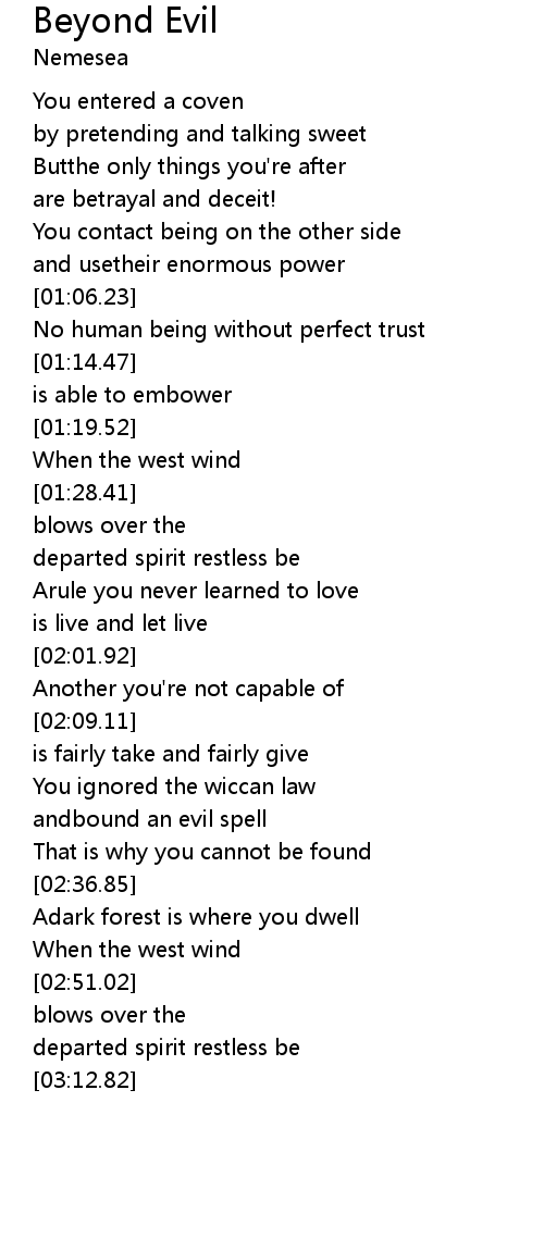 | [02:18.64] | You ignored the wiccan law |