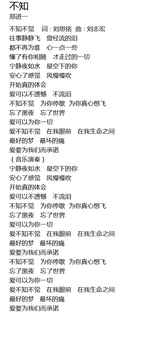 | [00:00.00] | 不知不觉 词∶刘思铭 曲∶刘志宏 |