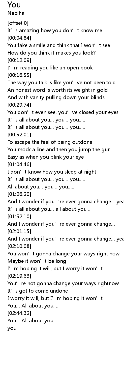 | [00:18.48] | The way you talk is like you’ve not been told |