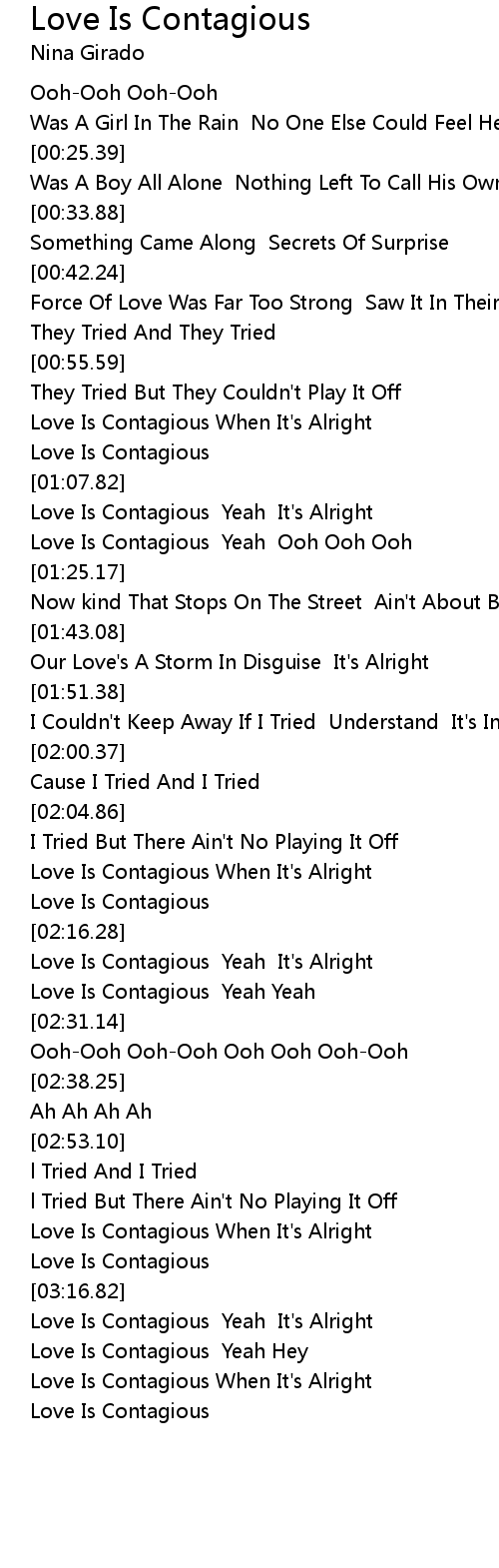 Love Is Contagious Yeah Ooh Ooh Ooh |