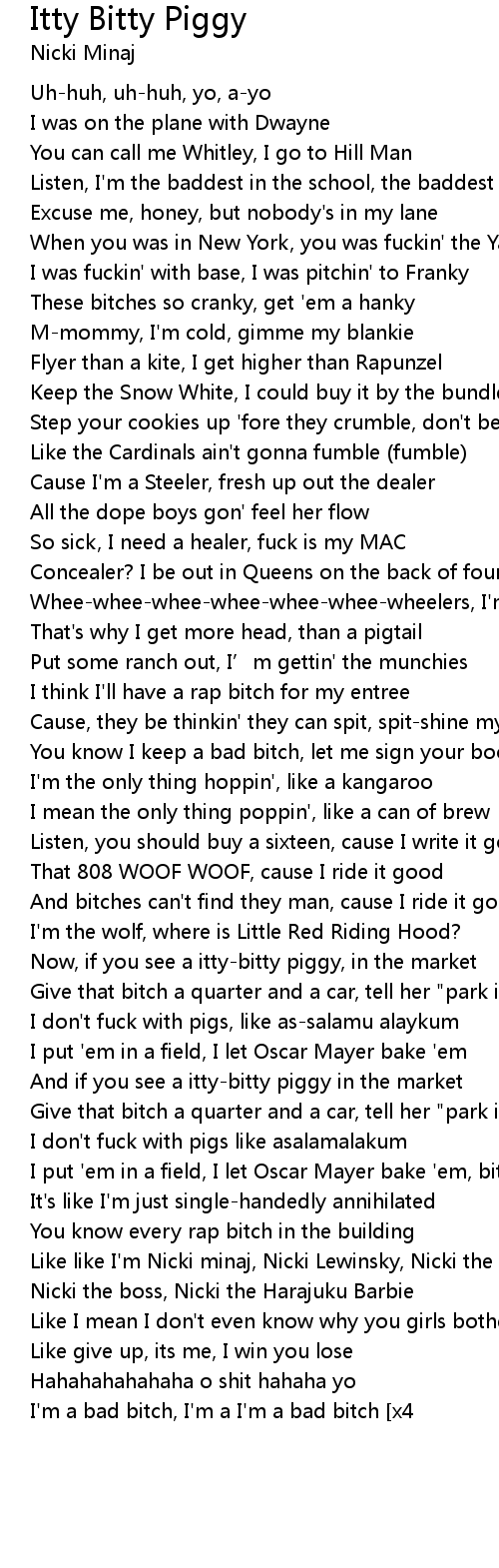 | [01:51.97] | Like like I'm Nicki minaj, Nicki Lewinsky, Nicki the ninja, |