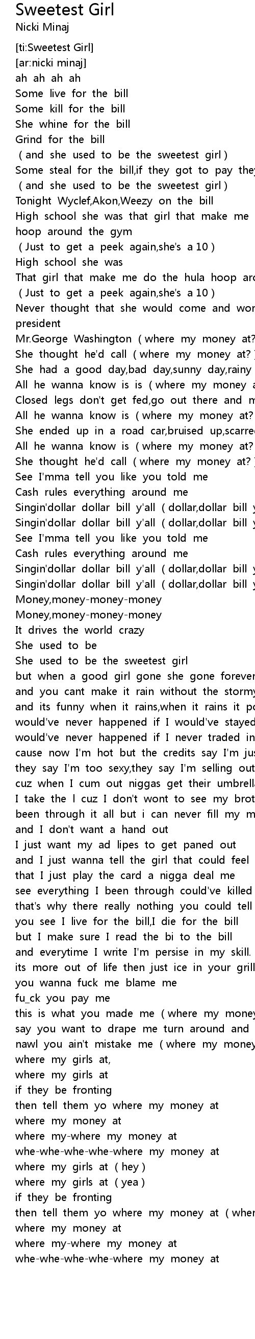 | [03:00.66] | whe-whe-whe-whe-where my money at |