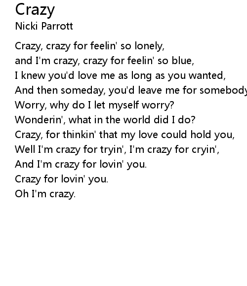 | Well I'm crazy for tryin', I'm crazy for cryin', | |