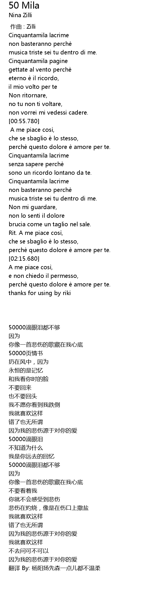 | [02:39.430] | perchè questo dolore è amore per te. |