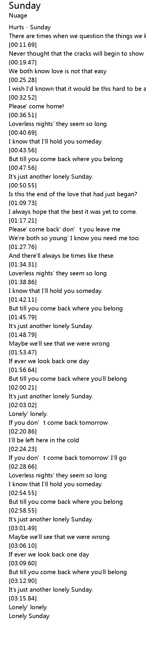 | [02:59.42] | It's just another lonely Sunday. |