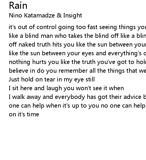 it's out of control going too fast seeing things you never thought would last like a blind man who takes the blind off like a blind man who takes the blind off naked truth hits you like the sun between your eyes naked truth hits you like the sun between your eyes and everything's coming straight at you but nothing hurts you like the truth you've got to hold on to the things that you believe in do you remember all the things that we believe in? |