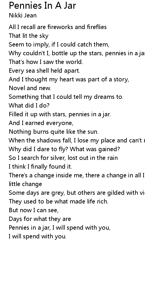 Pennies in a jar, I will spend with you, |